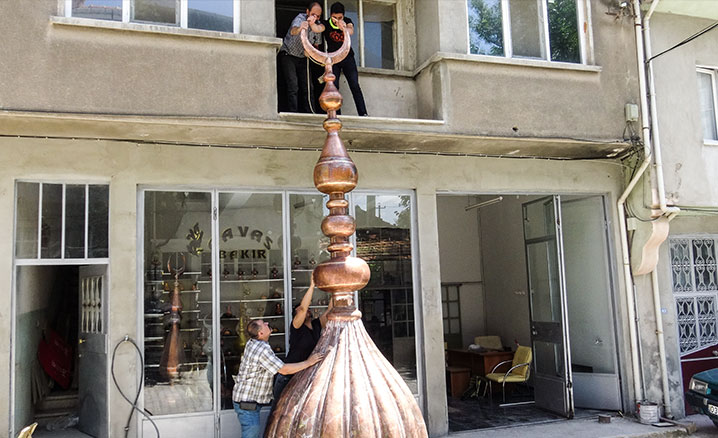 Üstün, alemin motiflerinde bakır işçiliğinin bütün hünerlerini konuşturduklarını ve güzel bir iş ortaya koyduklarını dile getirerek, aynı cami için farklı çalışmalarının da olacağını anlattı.