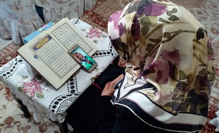 Denizciler Kız Kur'an Kursu’nda hafızlık eğitimine devam eden Younous, Kovid-19 salgınına karşı yüz yüze eğitimlere ara verilmesinin ardından, ezberlerini Kur’an kursu hocalarına görüntülü arama yöntemiyle dinletti.