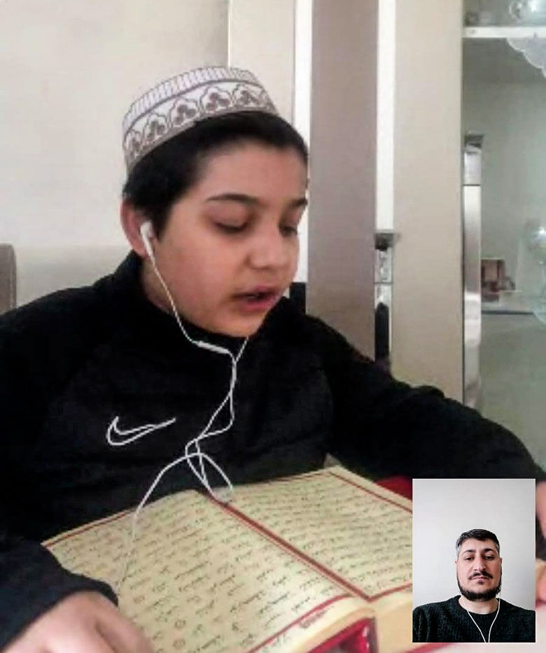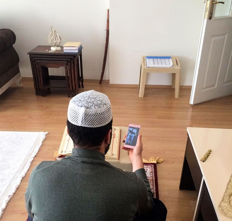 Kur'an kurslarında hafızlık ders dinlenmeleri ve yüzüne dersler görüntülü arama yöntemiyle dinleniyor.