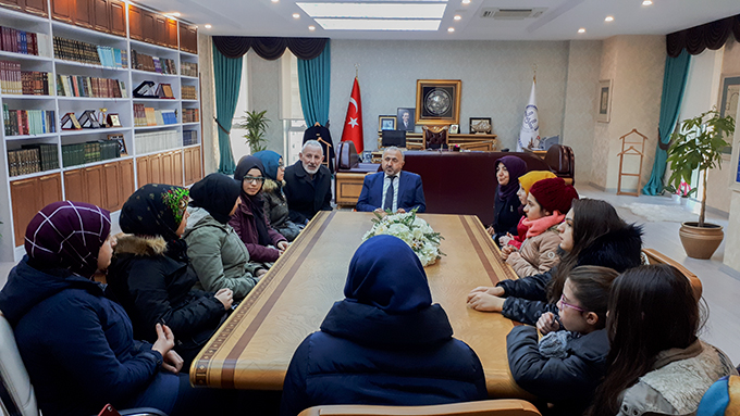 Kuran Kursu Öğreticisi Ayfer Kılıç nezaretinde Küçükçekmece İlçe Müftüsü Mustafa Temel’i ziyaret eden öğrenciler, Yemenli kardeşlerine ulaştırmak üzere aralarında topladıkları yardımı teslim ettiler.