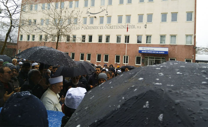 Cenazesi Kur’an kursuna getirilen Yeşil için öğrencilerinden helallik alan Isparta İl Müftüsü Bayram Şahin, kursun önünde yoğun bir katılımla cenaze namazını kıldırdı.