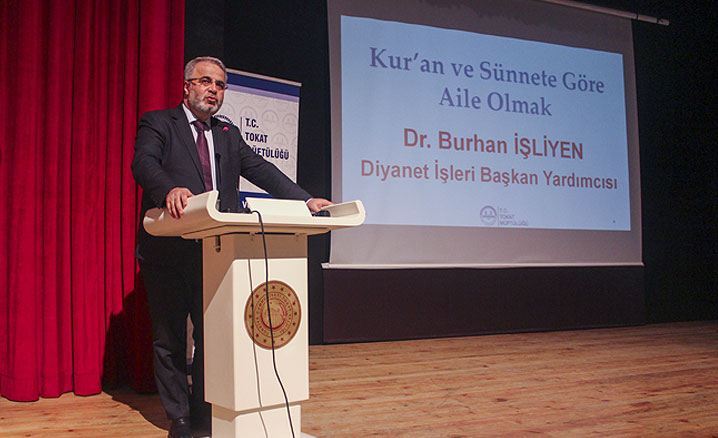 Tokat Kültür Sarayı’nda “Kur’an ve Sünnete Göre Aile Olmak” konulu konferans veren Diyanet İşleri Başkan Yardımcısı İşliyen, ailede huzur ve saadetin oluşması için sevgi, merhamet ve güzel ahlakın vazgeçilmez unsurlar olduğunu kaydetti.
