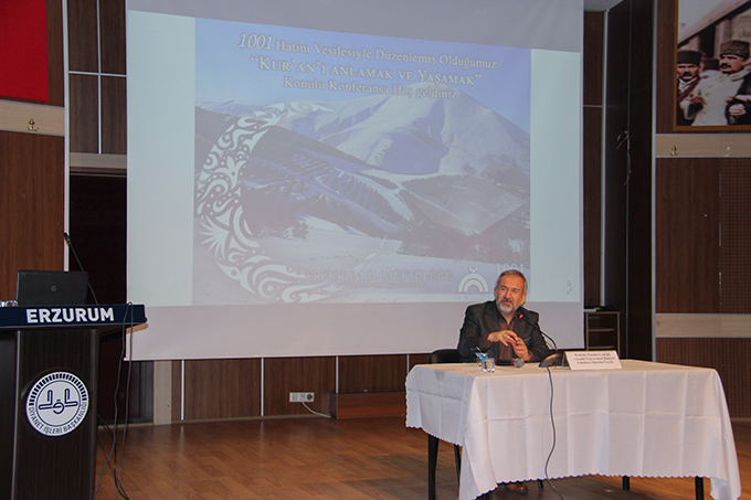 İl Müftüsü Sula'nın konuşmasının ardından Atatürk Üniversitesi İlahiyat Fakültesi Öğretim Üyesi Prof. Dr. Necdet Çağıl’ın konferansı başladı.
