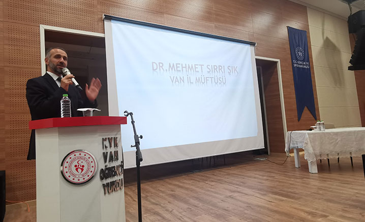 Bu kapsamda Kredi ve Yurtlar Kurumu (KYK) yurtlarında kalan kız öğrencilere yönelik "Peygamberimiz, Cami ve İrşat" konulu konferans düzenlendi.