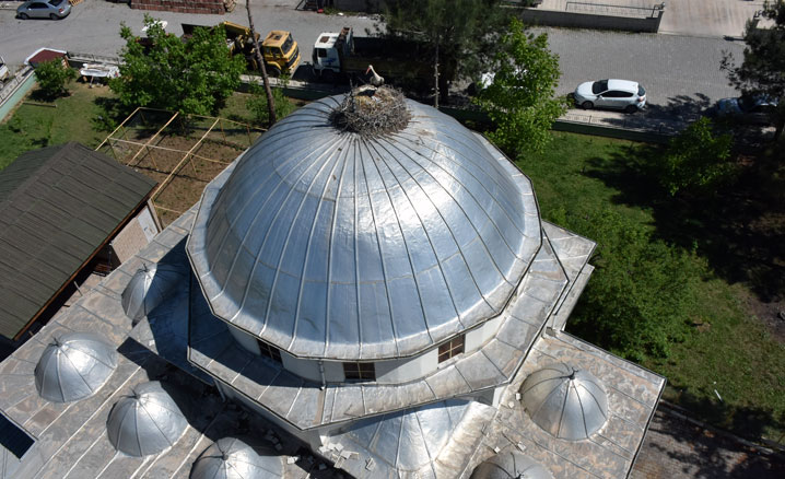 Niksar ilçesi Sanayi Sitesinde 1994'te inşa edilen caminin kubbesi, hemen ardından leyleklere ev sahipliği yapmaya başladı.
