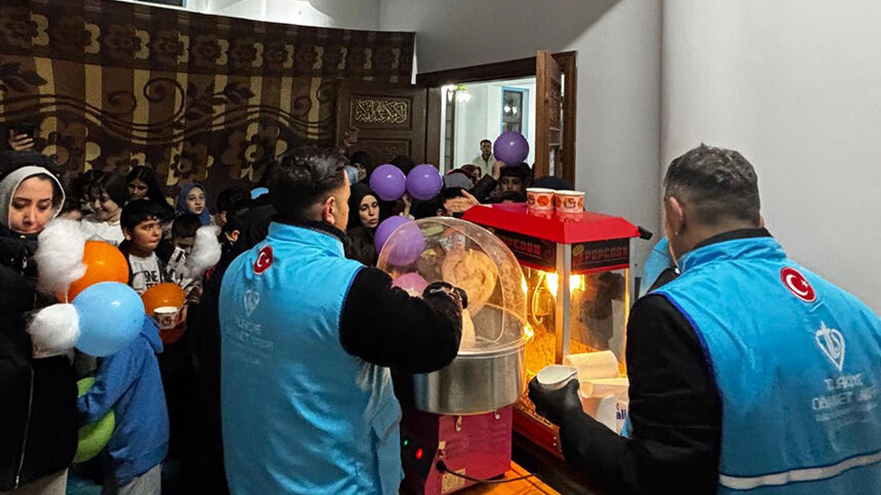 Etkinlik kapsamında cami içerisinde çocuklar için çeşitli oyunlar düzenlenirken, ilahiler eşliğinde eğlenceli anlar yaşandı.