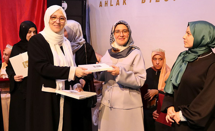 Diyanet İşleri Başkanı Ali Erbaş’ın eşi Seher Erbaş ise "Evlatlarımızın başarısı bizim mutluluğumuz ve gururumuzdur. Bu başarılar sadece dünyevi katkılarla sınırlı olmamalı ve sizler bunları çok iyi idrak eden ailelersiniz ki hafızlık konusunda evlatlarınızı yönlendirip destek verdiniz. Kalplerini Kur’an ile süsleyen talebelerimizi ve onlardan desteklerini esirgemeyen ailelerini tebrik ediyor hepinize en kalbi şükranlarımı iletiyor, muhabbetle selamlıyorum." ifadelerini kullandı.