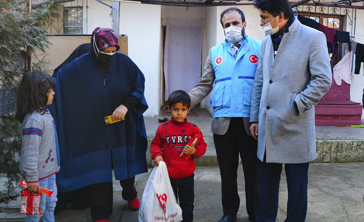 Tespit edilen ihtiyaç sahibi aileler için hazırlanan yardım kolileri, Mamak Müftülüğü din görevlileri ve Türkiye Diyanet Vakfı gönüllülerince ailelere teslim ediliyor.