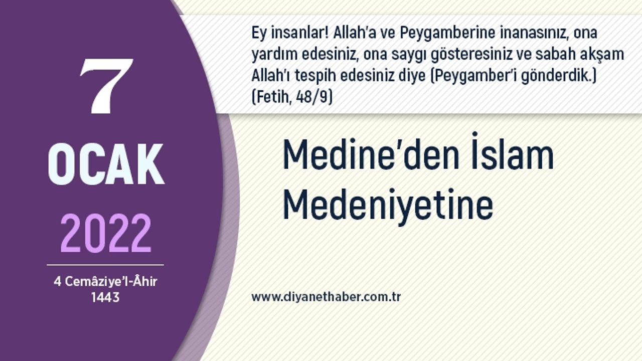 İslam medeniyetinin ilk örneği Medine’de teşekkül etmiştir. Kınamak, azarlamak anlamlarına gelen Yesrib ismi, Medine ile değiştirilmiştir. Yeni isimle başlayan değişim süreci, İslam medeniyetinin ayırt edici özelliklerini gösteren örnekleri beraberinde getirmiştir. Medine Vesikası’yla farklı din ve ırklardan olan insanların hak-hukuk esasları çerçevesinde, hoşgörüyle birlikte yaşayabileceği bir medeniyet örneği ortaya konulmuştur. Ensar ve Muhacir kardeşliğiyle bu erdemin imanın gereklerinden olduğu, İslam medeniyetinin kardeşlik esasına dayandığı vurgulanmıştır. Mescid-i Nebevî ve Suffe’nin inşasıyla İslam’ın mescit merkezli, inanç odaklı ve ilim öğrenmenin herkese farz olduğu bir bilgi medeniyeti olduğu; yoksulun, kimsesizin himaye edildiği bir merhamet medeniyeti olduğu vurgulanmıştır. Yeri bizzat Peygamberimiz tarafından belirlenen çarşıyla da İslam medeniyetinin iktisat anlayışının, helal lokma, helal kazanç, israftan kaçınma ilkeleri üzerine bina edildiği gösterilmiştir.