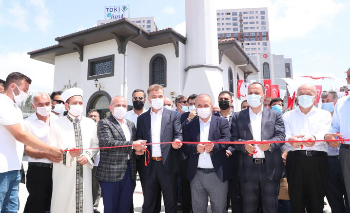 Caminin açılışı için koronavirüs tedbirleri eşliğinde düzenlenen tören Kur’an-ı Kerim tilavetiyle başladı.