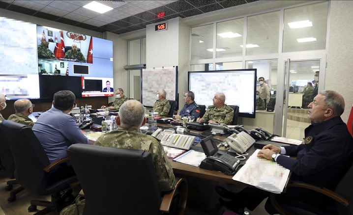 Bakan Akar, buradaki incelemelerini tamamlamasının ardından beraberindeki TSK komuta kademesi ile Kara Kuvvetleri Harekat Merkezi'ne geçti.