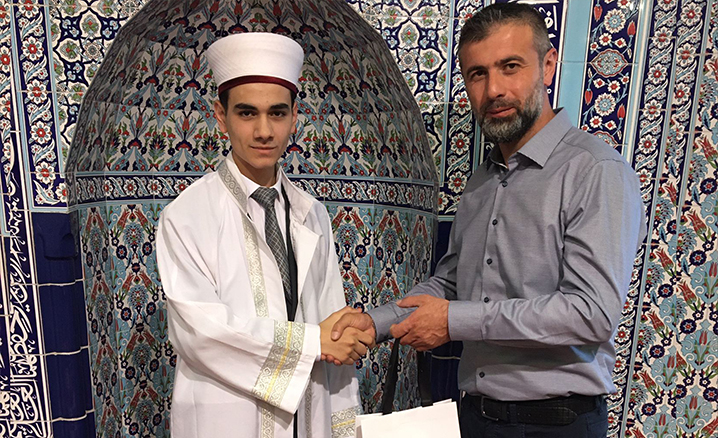 Melle DİTİB Mimar Sinan Camii din görevlisi Levent Albayrak tarafından yetiştirilen cami öğrencilerinden 17 yaşındaki Ekrem Biçici, 30 aylık çalışmasının ardından Kur'an-ı Kerim’i ezberleyerek hafızlığını tamamladı.