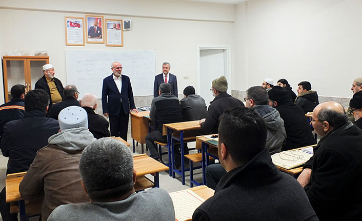 Konya İl Müftüsü Ahmet Poçanoğlu, mesai saatleri sonrasında Hacı Hasanbaşı Kur’an Kursu’nda Kur’an-ı Kerim eğitimi alan kursiyerleri ziyaret etti.