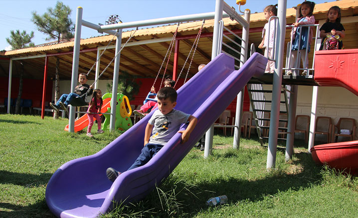 Arslan, ikramların ardından futbol, yakar top, saklambaç ve geleneksel oyunlarla eğlenen çocuklardan dileyenlere Kur'an-ı Kerim ve ahlak eğitimi de veriyor.