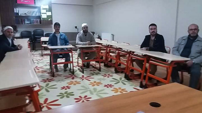 Diyarbakır Çüngüş İlçe Müftüsü Ali Bahadır’ın başlattığı etkinlik, Kuran'ı Kerim, hadis, Klasik Usul Arapça ve güncel dini konularda müftülük çalışanları ile ders şeklinde sabah mesai başlarken devam ediyor..