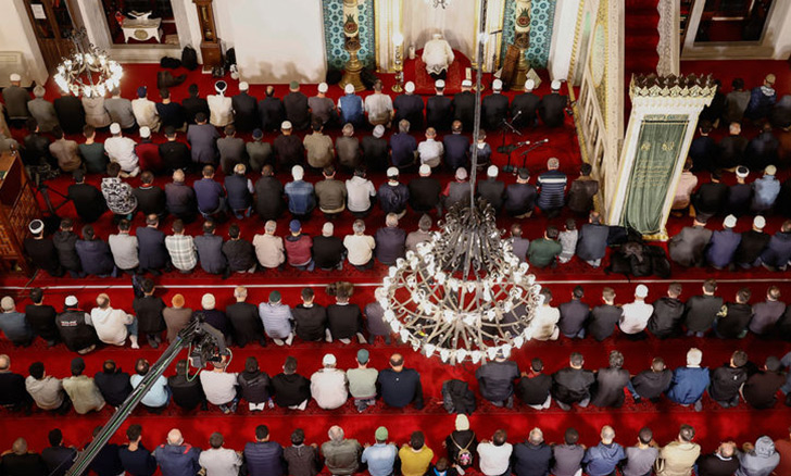 Balkanların ilk camisi Hızırbey Camii'nde vatandaşlar ellerini dua için açtı.