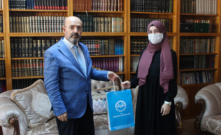 İl Müftülüğünde koronavirüs tedbirlerine riayet edilerek düzenlenen törende İl Müftüsü Ali Rıza Tahiroğlu, dereceye giren gençleri tebrik ederek ödüllerini takdim etti.