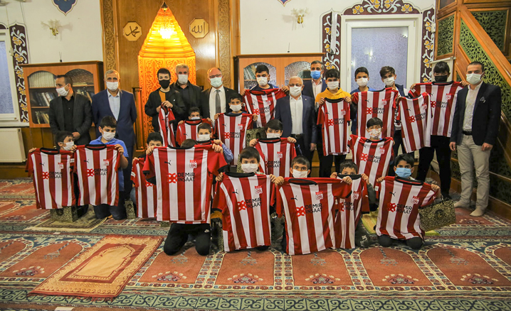 Mescidi Aksa Camii’nde düzenlenen kandil programında Sivas Belediyesi tarafından gençlere forma hediye edildi.