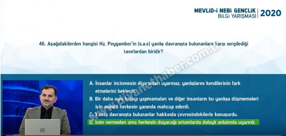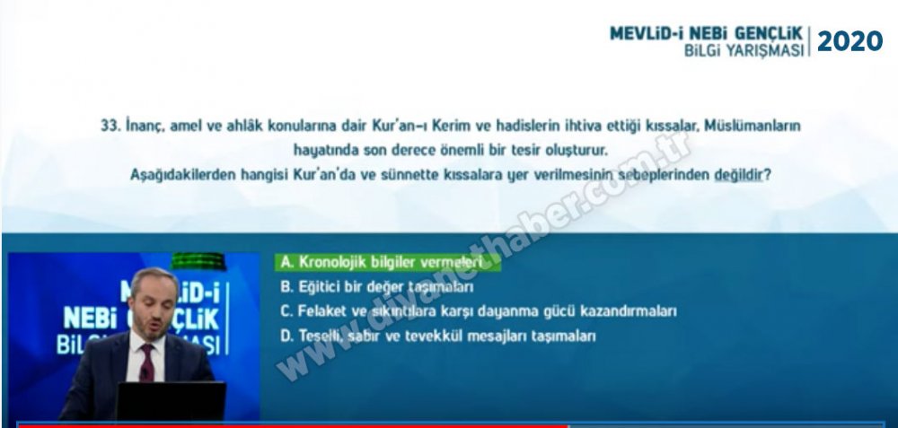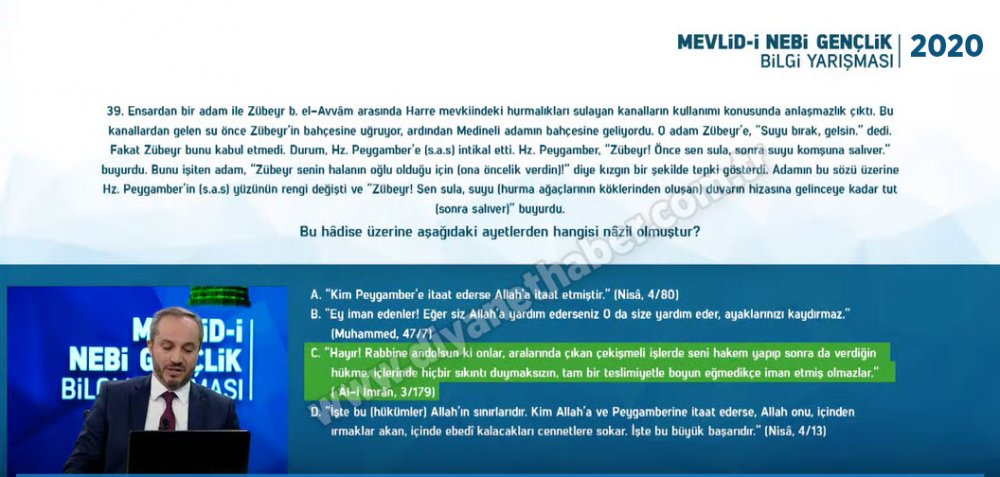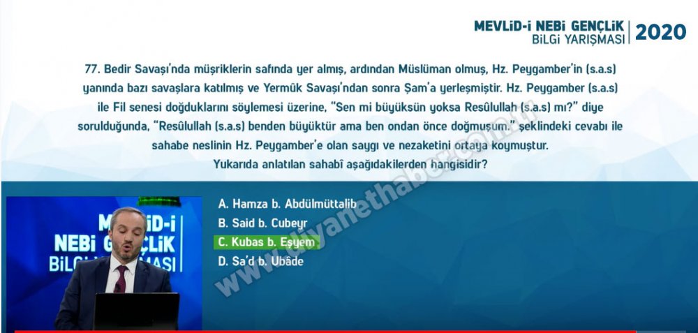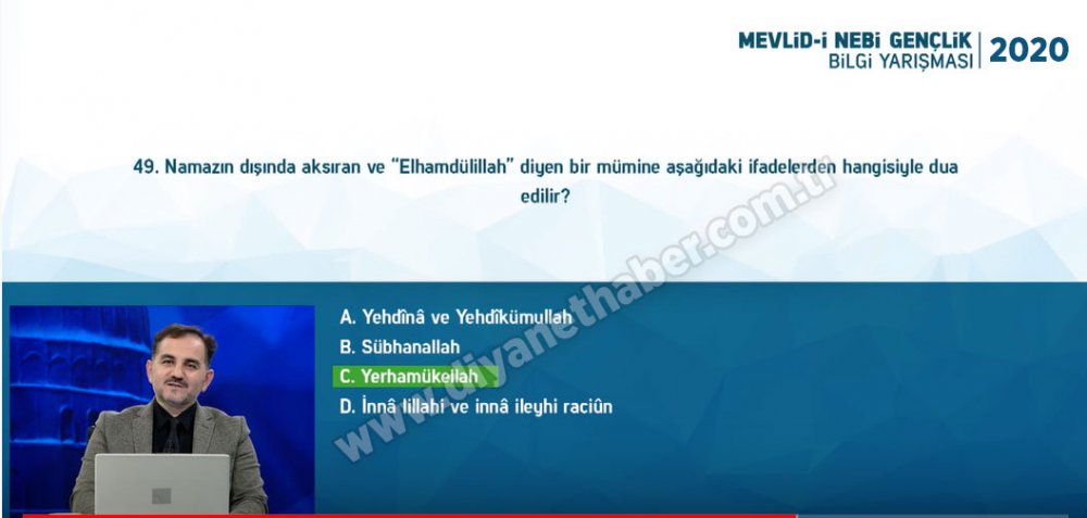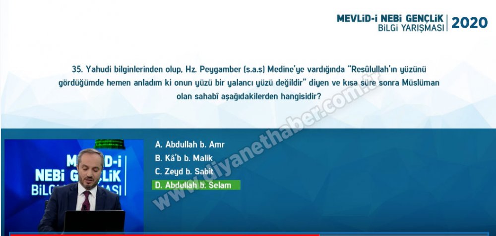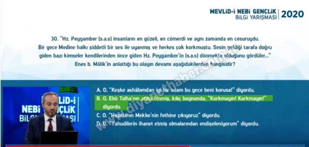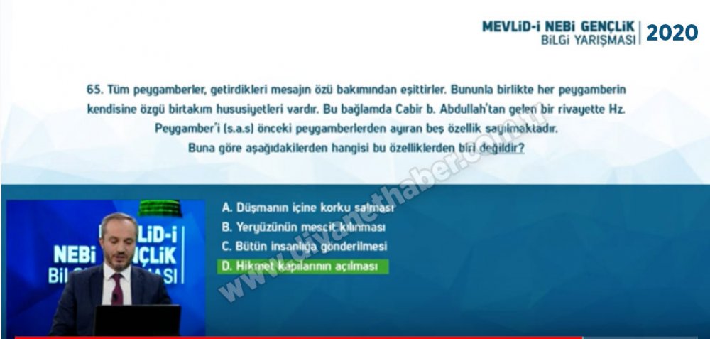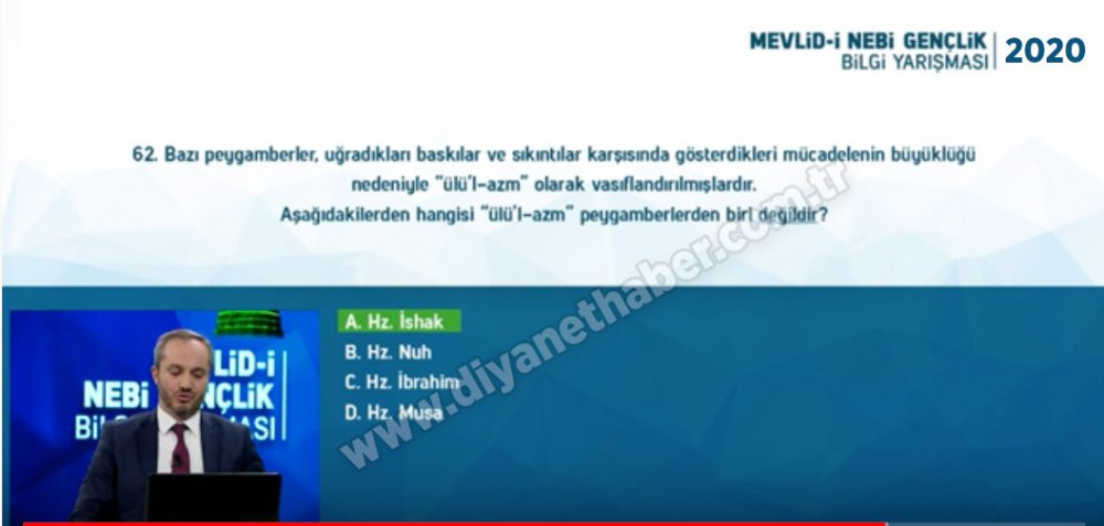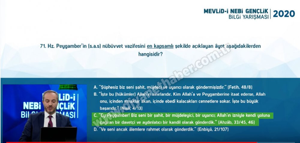 Diyanet İşleri Başkanlığı Din Hizmetleri Genel Müdürlüğü tarafından 81 ilde İl Müftülüklerince ve Kuzey Kıbrıs Türk Cumhuriyeti'nde gerçekleştirilen Mevlid-i Nebi Gençlik Yarışması soru ve cevapları bu akşam Diyanet TV Youtube kanalından canlı olarak verildi.