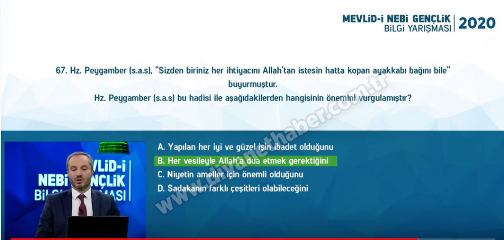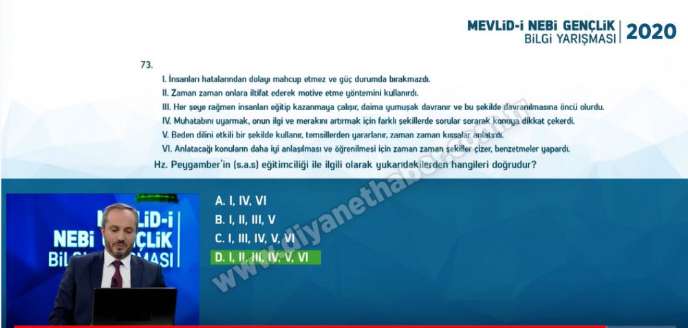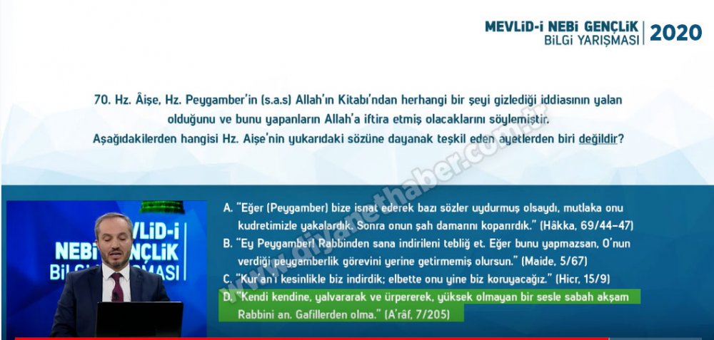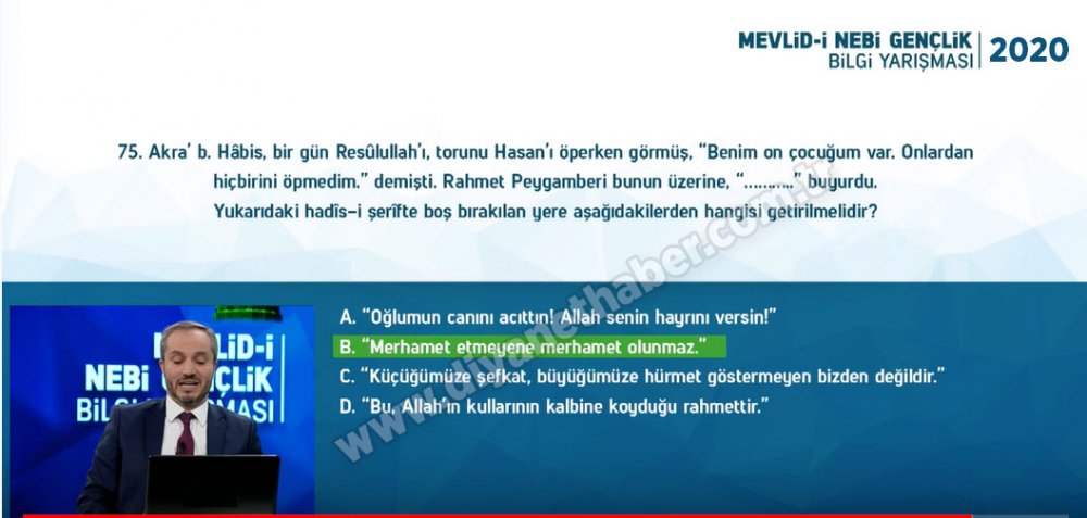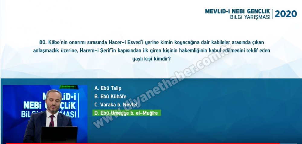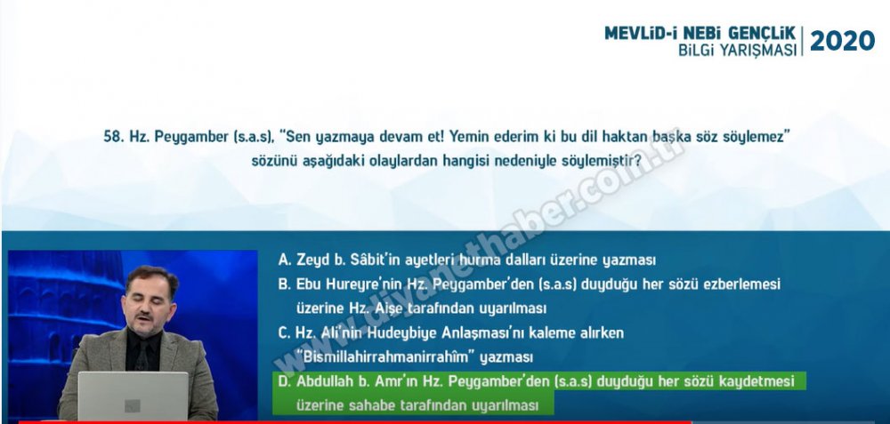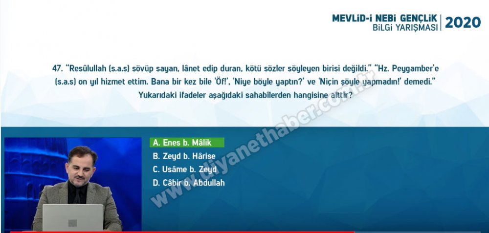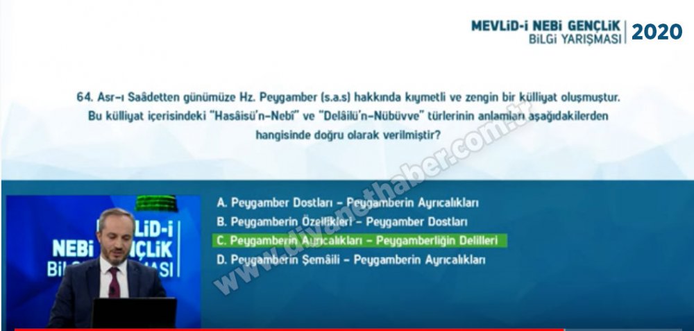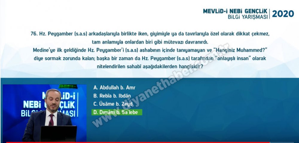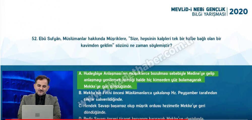 Diyanet İşleri Başkanlığı Din Hizmetleri Genel Müdürlüğü tarafından 81 ilde İl Müftülüklerince ve Kuzey Kıbrıs Türk Cumhuriyeti'nde gerçekleştirilen Mevlid-i Nebi Gençlik Yarışması soru ve cevapları bu akşam Diyanet TV Youtube kanalından canlı olarak verildi.