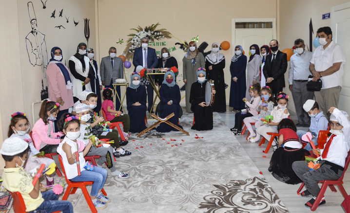 Öğrencilere hediye takdiminde bulunan İl Müftüsü Sürgeç, daha sonra çocuklarla birlikte fidan dikme etkinliğine katıldı.
