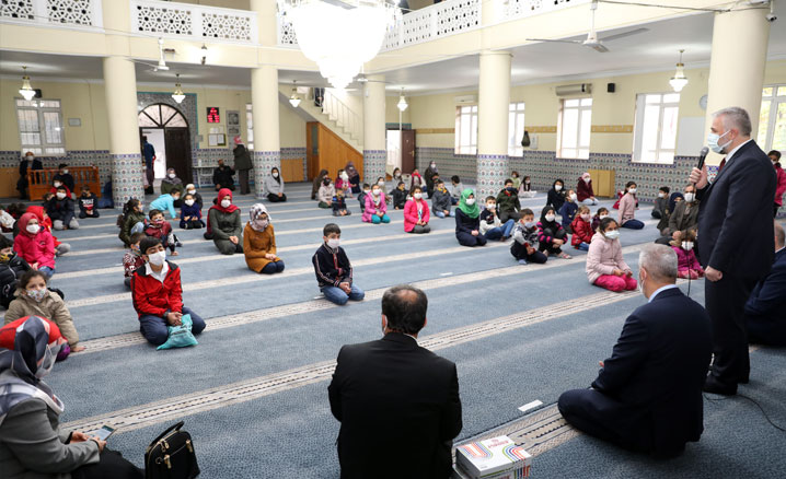 Programda konuşan İl Müftüsü Prof. Dr. Şahin Güven, “Diyanet İşleri Başkanlığı olarak Peygamberimiz (s.a.s.)’in doğduğu geceyi de içerisine alan haftayı Mevlid-i Nebevi Haftası olarak idrak ediyor ve çeşitli programlar düzenliyoruz. Bu yılın konusu da ‘Peygamberimiz ve Çocuk’ olarak belirlendi. Bizler de bu yıl çeşitli camilerimizde programlar yaptık, çocuklarımızla ve gençlerimizle bir araya geldik. Bir de Peygamberimiz (s.a.s.) yetim idi. Yetimlerin başını okşardı, onların ihtiyacını giderirdi. Onun (s.a.s.) ümmeti olarak bizler de Peygamberimizin çizdiği yoldan gidelim ve aynı zamanda Peygamberimizin sünnet-i seniyesini yerine getirelim istedik. Sizlerin onurlu ve şahsiyetli birer genç olarak yetişmesini istiyoruz.” dedi.