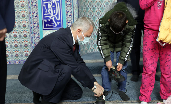 Konuşmaların ardından 130 yetim çocuğa kaban, pantolon ve ayakkabıdan oluşan kıyafet yardımı yapıldı.
