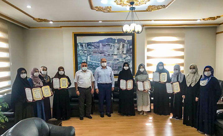 Koronavirüs tedbirlerine riayet edilerek düzenlenen törende İlçe Müftüsü Süleyman Şahin, sınavda başarılı olan hafız öğrencileri, ailelerini ve hocalarını tebrik ederek, başarılarının devamı diledi.