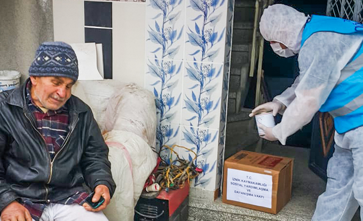 İznik İlçe Müftülüğü koordinesinde koronavirüsle mücadelede sahada olan din görevlileri, bir taraftan yaşlı ve kronik rahatsızlığı olan vatandaşların temel ihtiyaçlarını karşılarken diğer yandan topluma dini ve manevi rehberlik hizmeti sunuyor.