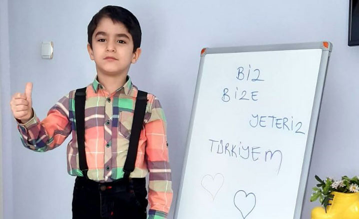 Koronavirüs tedbirleri kapsamında sokağa çıkmaları kısıtlanan minikler, evlerinde hazırladıkları görsellerle de kampanyaya desteklerini gösterdiler.