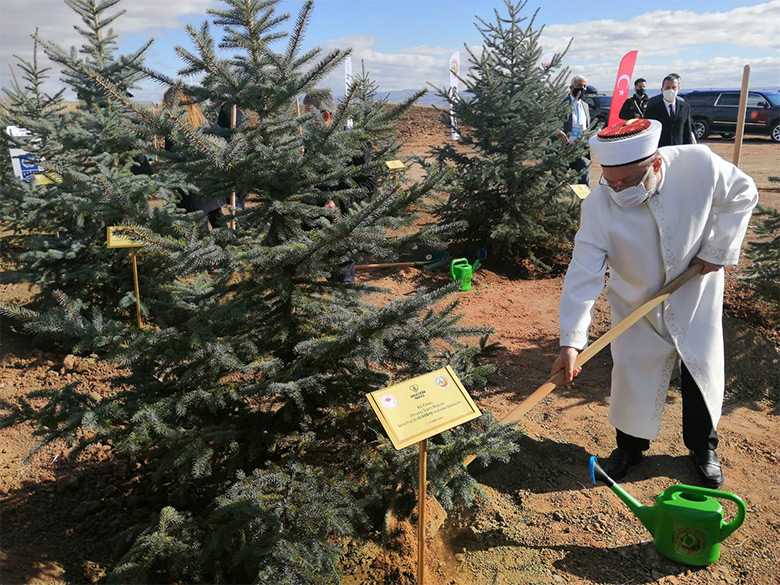 Hazreti Muhammed'in tabiatın korunmasını istediğini, ümmetine ağaç dikmeyi ve ekin ekmeyi tavsiye ettiğini hatırlatan Erdoğan, Hazreti Muhammed'in "Müslüman bir ağaç diker ve o ağaçtan insan, hayvan veya kuş istifade ederse bu kıyamet gününe kadar o kimse için sadaka olur." dediğini belirtti.
