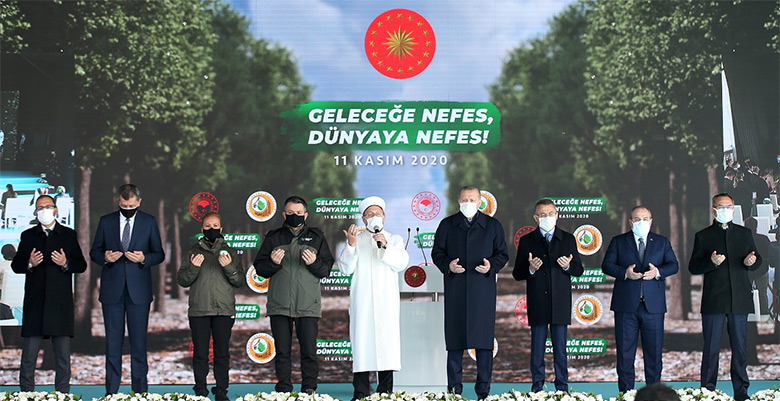 Yapılan duanın ardından Cumhurbaşkanı Erdoğan ve Diyanet İşleri Başkanı Prof. Dr. Ali Erbaş fidan dikim alanında fidanları toprakla buluşturdu.