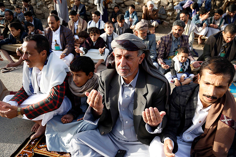 Yemenliler, ülkenin farklı kentlerindeki camilerde ve meydanlarda Ramazan Bayramı namazını eda etti.