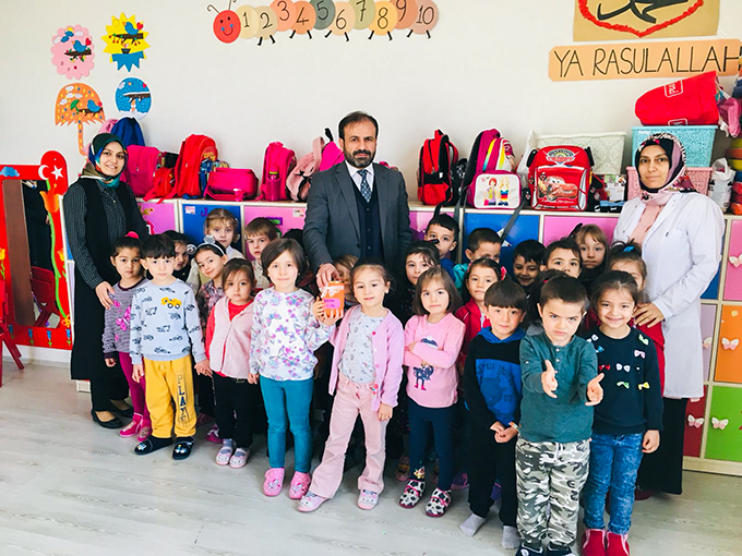 Miniklerin kumbaralarından çıkan miktar 485 lira 35 kuruş… Anlamı miktarından çok çok büyük olan bu paraları minikler İlçe Müftüsü Necmettin Saydan'a dualarla teslim ettiler.