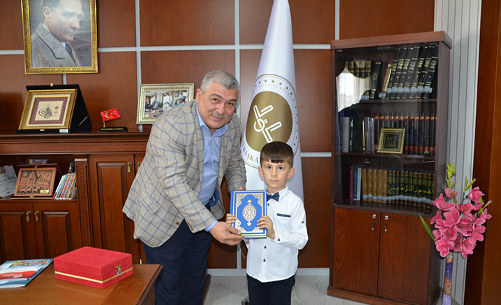 İl Müftüsü Ahmet Celalettin Altunkya, minik Yunus Emre Yasan ve Kur’an Kursu Öğreticisi Meryem Pamuk Çakmaktepe'yi kabul etti.