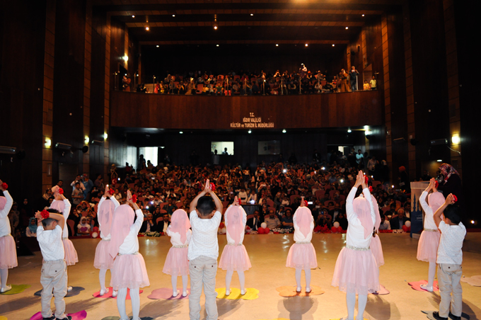 Kur’an-ı Kerim tilaveti, şiir dinletisi, semazen gösterisi ve çeşitli oyunlar sunan minikler, izleyicilerden büyük alkış aldılar.