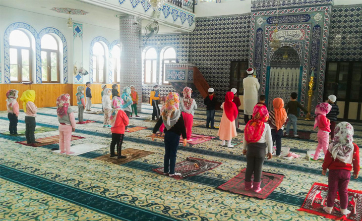 Öğretmenleriyle birlikte camiyi ziyaret eden miniklere, cami ve namaz ibadeti hakkında bilgi verildi.