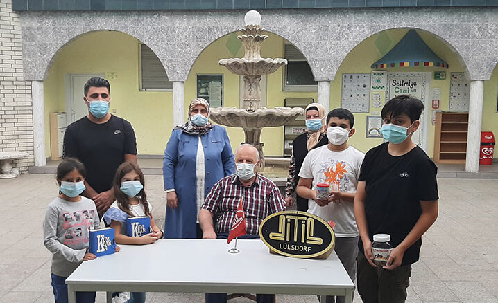 Kur’an kursu öğrencileri Zehra, Rabia (7),Talha, Osman (11) sel felaketi kampanyası kapsamında kumbaralarında biriktirdikleri harçlıklarını, Lülsdorf Selimiye Camii Kadın Kolu Başkanı Semiha Şişman, Köln Bölge Kadınlar Kolu Başkanı Ümran Aslan ve velileri eşliğinde caminin emektarlarından İlhami Altınay’a teslim etti.