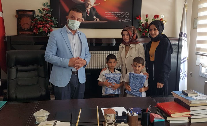 Minikleri kabul eden İlçe Müftüsü Mahmut Çelebi, çeşitli hediyeler takdim etti.
