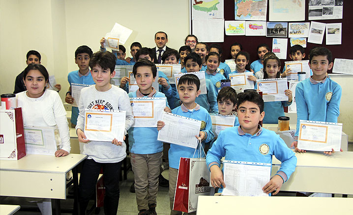 Minik öğrenciler, Kur’an’a geçmeleri dolayısıyla taçlandırılarak ilk dönem karnelerini aldı.