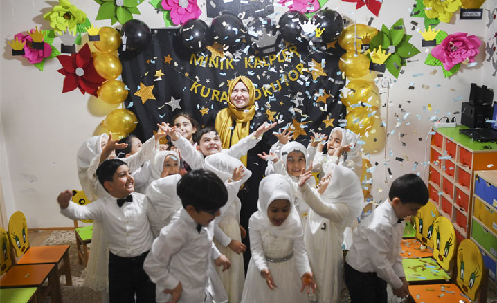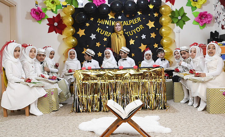 Karne ve yarıyıl tatili heyecanının yaşandığı bir başka adres, Diyanet İşleri Başkanlığı 4-6 yaş grubu Kur’an kurslarıydı.