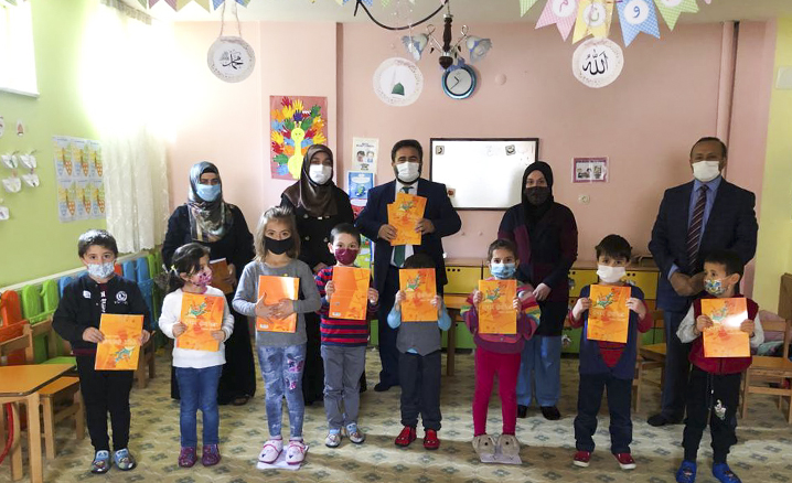 Koronavirüs tedbirlerinin üst düzey uygulandığı etkinliklerde çocuklara Diyanet İşleri Başkanlığı yayınlarından “Ufak Şeyler” adlı kitap hediye edildi.