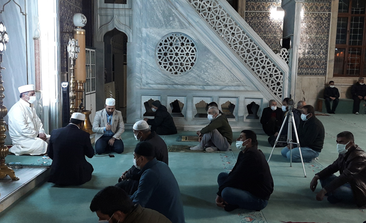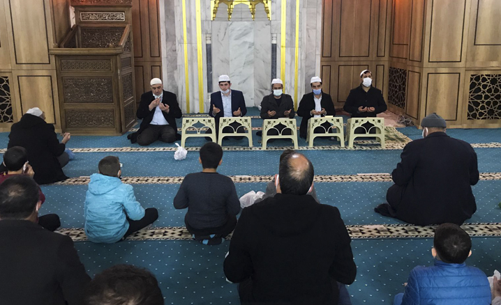 Koronavirüs tedbirleri kapsamında maske ve mesafe kuralına riayet ederek camiyi dolduran vatandaşlar, salgın hastalığın son bulması için hep birlikte dua etti.