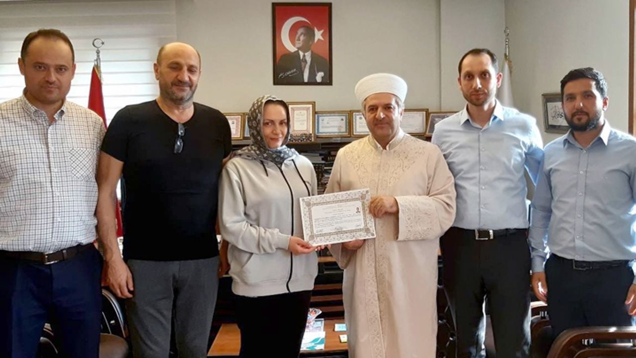 Valentina’yı tebrik eden Müftü Koçak, İhtida Belgesi ile birlikte Diyanet İşleri Başkanlığı yayınlarından çıkan Kur'an-ı Kerim meali ile İslam dinine dair çeşitli kitaplar hediye etti.