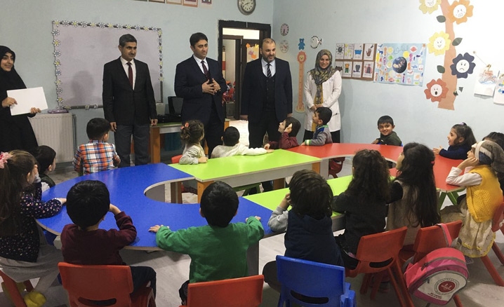 Iğdır İl Müftüsü İrfan Açık, Iğdır Tuzluca Kaymakamı Salih Çiğdem ile birlikte İl Müftülüğüne bağlı 4-6 Yaş Minik Yürekler Kur’an Kursu öğrencilerini ziyaret etti.