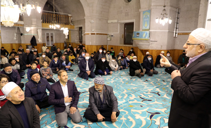 Yatsı namazını gençlerle birlikte kıldıktan sonra gençlere hitap eden Müftü Akkuş, “Gençler; mutlaka namazlarımıza devam edeceğiz. Secdemize şeytan, nefis ve insan şeytanlarının engel olmalarına müsaade etmeyeceğiz. Hiç kimse sizin secdenize engel olamayacak. Siz güçlü duracaksınız. Kur’an’ı ellerinizden bırakmayacaksınız. Allah Teala ile irtibatınızı kesmeyeceksiniz, kesmeyeceğiz, kesmemek durumundayız. Bizim ezanımız, Kur’an’ımız, dinimiz ve memleketimiz kutsaldır. Bizim kutsalımıza saldırmak isteyenlere önce siz fırsat vermeyeceksiniz. Bunun için mutlaka milli ve manevi değerlerimize sahip çıkacağız ve asla taviz vermeyeceğiz. Devletimizle birlikte hepimiz kanatlarımızı sizin üzerinize geriyoruz ve germek zorundayız.” dedi.