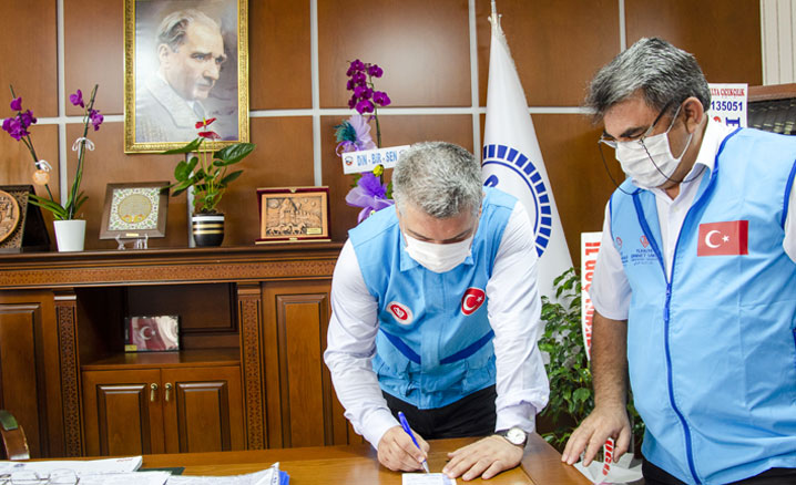 Kurban bağışını TDV adına kabul eden Türkiye Diyanet Vakfı Nevşehir Şube Temsilcisi Mustafa Tiftik, Müftü Altunkaya’ya bağış makbuzunu takdim etti.