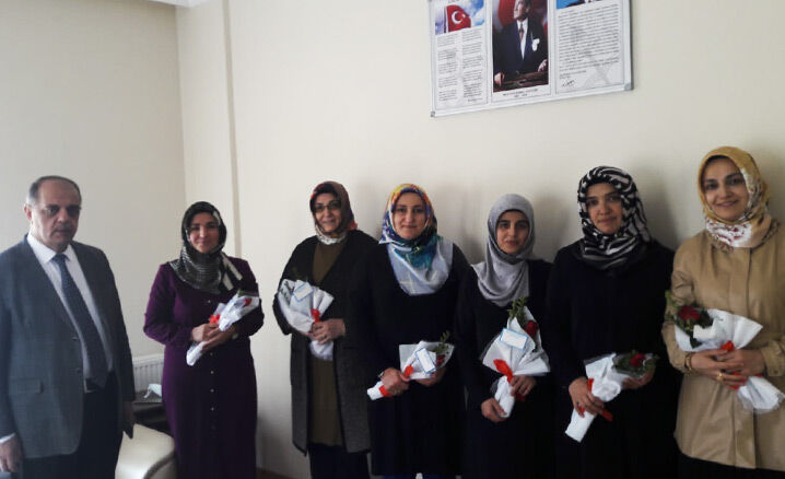 Ziyarette Kur'an kursu öğreticilerine günün anısına çiçek takdim edildi.