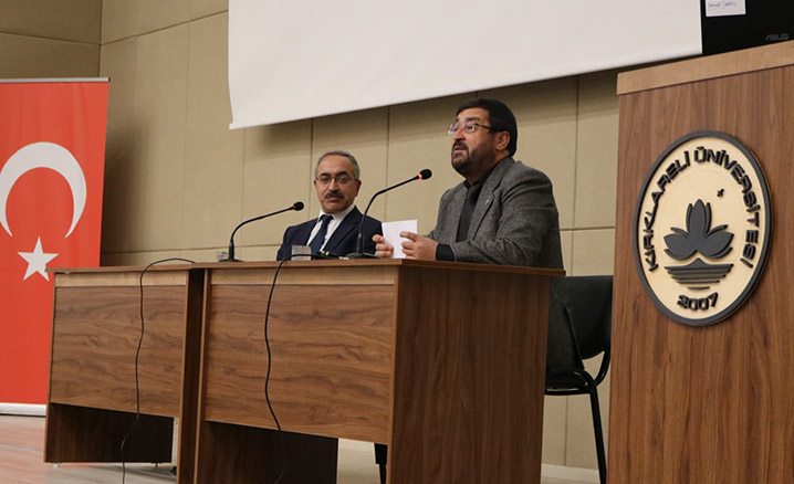 Kırklareli Üniversitesi İlahiyat Fakültesi tarafından "Güz Dönemi Rumeli Akademi Okumaları" etkinlikleri kapsamında "Dini Öğrenme ve Uygulamada İlahiyat Fakülteleri ve Diyanet İşleri Başkanlığı’nın Konumu" konulu konferans düzenlendi.
