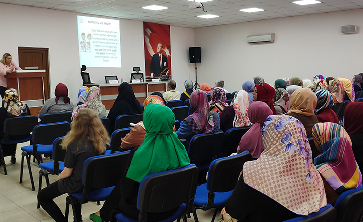 ADRB Koordinatörü Vaiz Müzeyyen Kabukçu’nun moderatörlüğündeki panelde Çanakkale Aile ve Sosyal Hizmetler İl Müdürlüğü görevlileri Aslı Karasaç Doruklu ve Tuğçe Öztürk sunum yaptı.